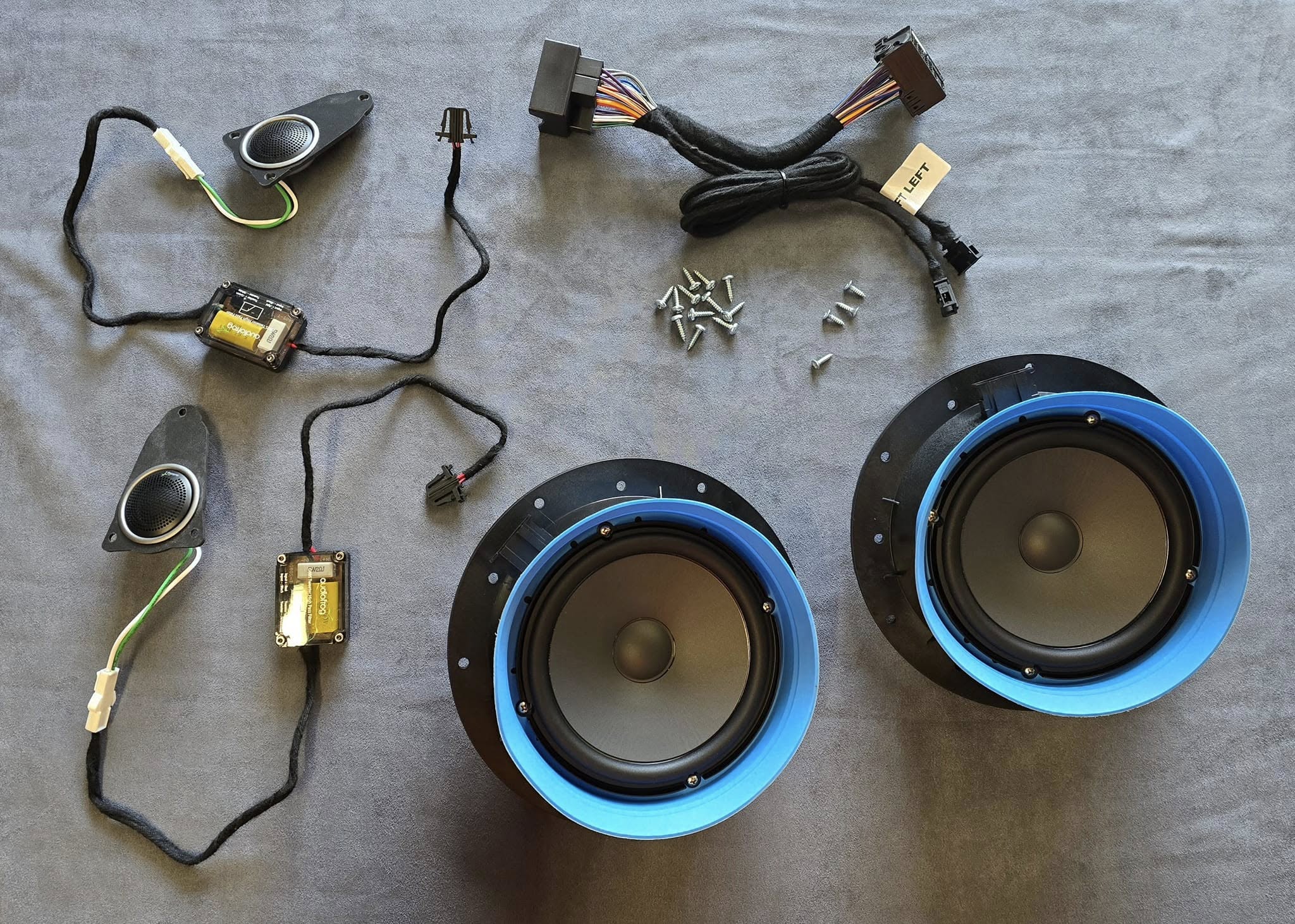 The kit will include all parts required for the install along with 10 sheets of sound deadening, IF YOUR VEHICLE HAS NO FACTORY TWEETERS WE CAN INCLUDE A PLUG AND PLAY CABLE TO ADD THEM